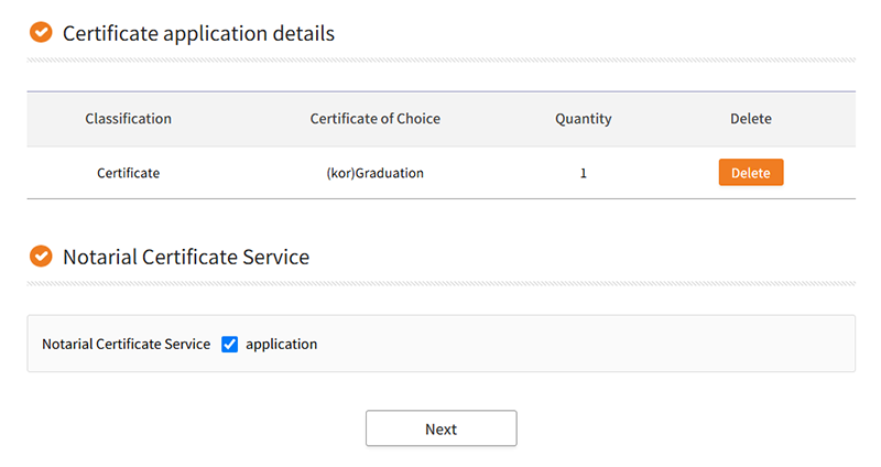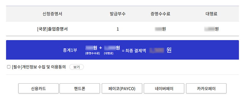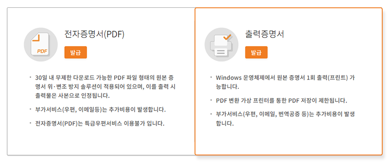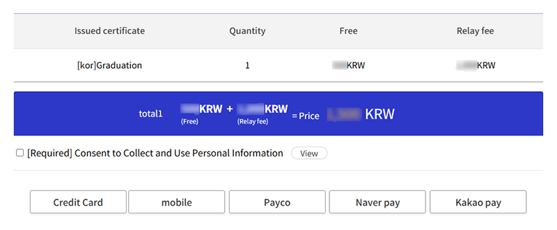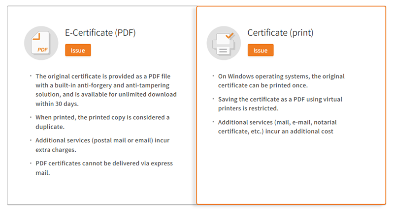 Select a payment method and print the certificate issued from the storage after payment is completed